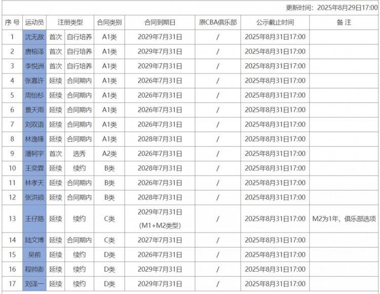 直播吧8月29日讯 CBA官网今天更新了国内球员注册信息,其中,浙江男篮注册了17名球员。